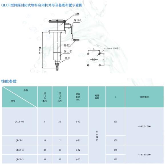 側(cè)搖全封閉螺桿式啟閉機適用于農(nóng)田灌溉和小型防洪排澇工程。 側(cè)搖全封閉螺桿式啟閉機為全封閉型,適于露天安裝。 側(cè)搖全封閉螺桿式啟閉機具有自鎖功能,閘門可停留在任何位置。 配有磁力鎖和專用扳手,具有防盜水的功能 .機身可澆注在水泥中,具有防盜機功能。