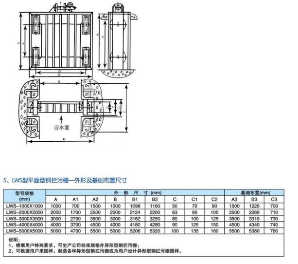 LWS型平面型鋼攔污柵,規(guī)格1000*1000-2000*2000采用型鋼結(jié)構(gòu)整體式,規(guī)格3000*3000-5000*5000采用型鋼結(jié)構(gòu)組裝式。